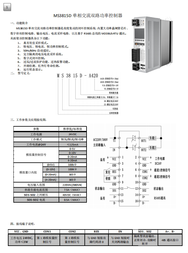 單相交流雙路調(diào)整器MS3825D
